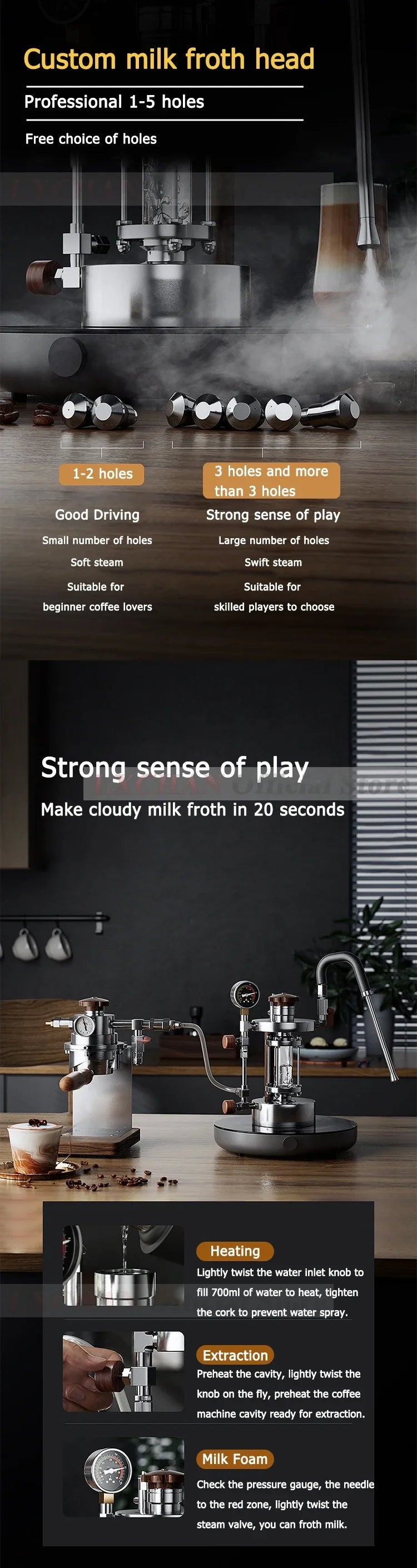 Elevate your coffee experience with the HomeWise Steam Milk Frother. Designed for both household and commercial use, this espresso milk foamer features a durable quartz glass chamber and an adjustable steam nozzle with 1–5 hole options. Achieve barista-quality microfoam for lattes, cappuccinos, and macchiatos effortlessly.